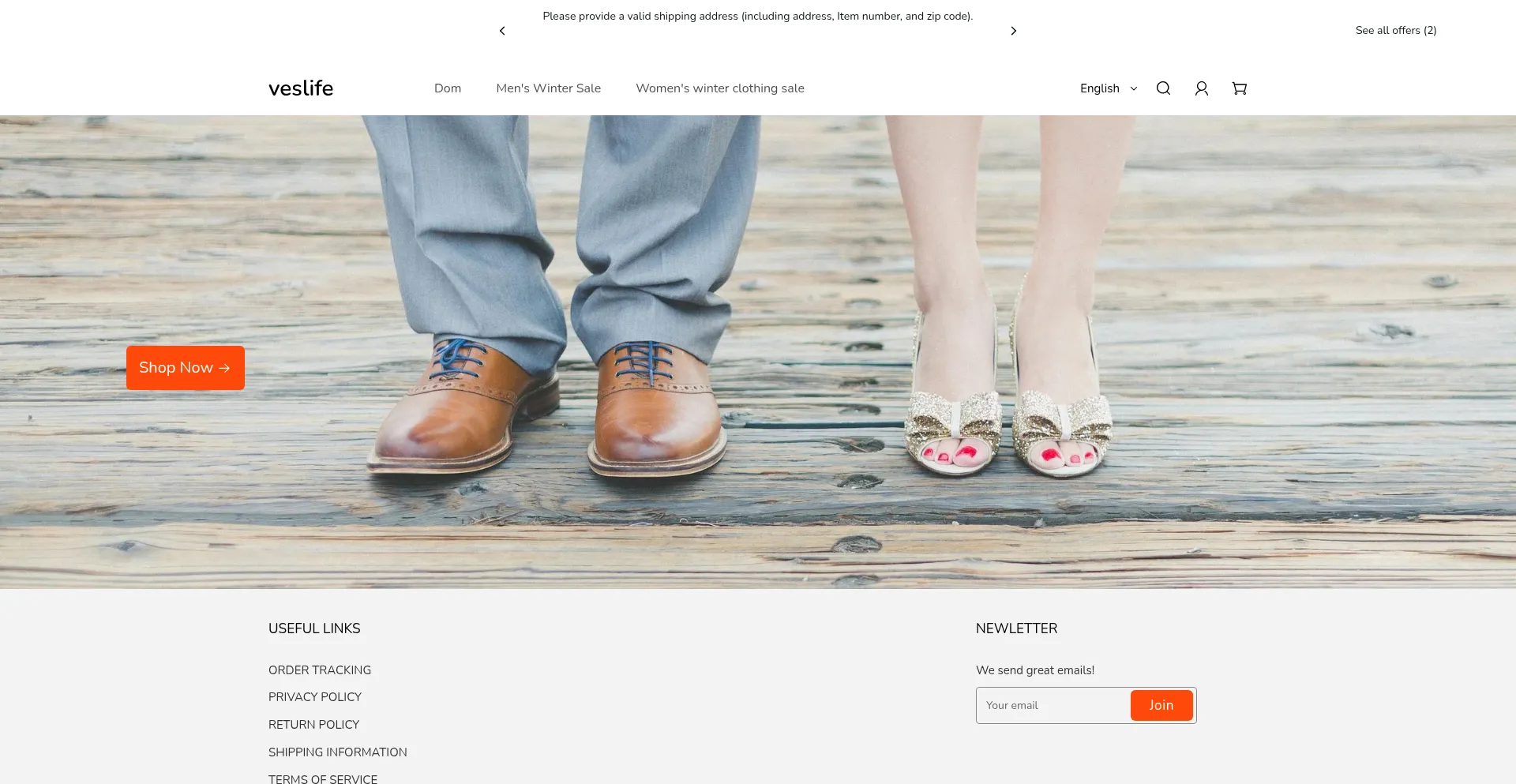 Veslife.shop is a scam website that offers to purchase items at extremely low prices. It may appear as a discounter, or as a marketplace for warehouse liquidation items, but it is actually just a narrative to make you think about this site as a legitimate one. After ordering from this site, you will most likely get nothing at all, or, at best, inferior or counterfeit items.